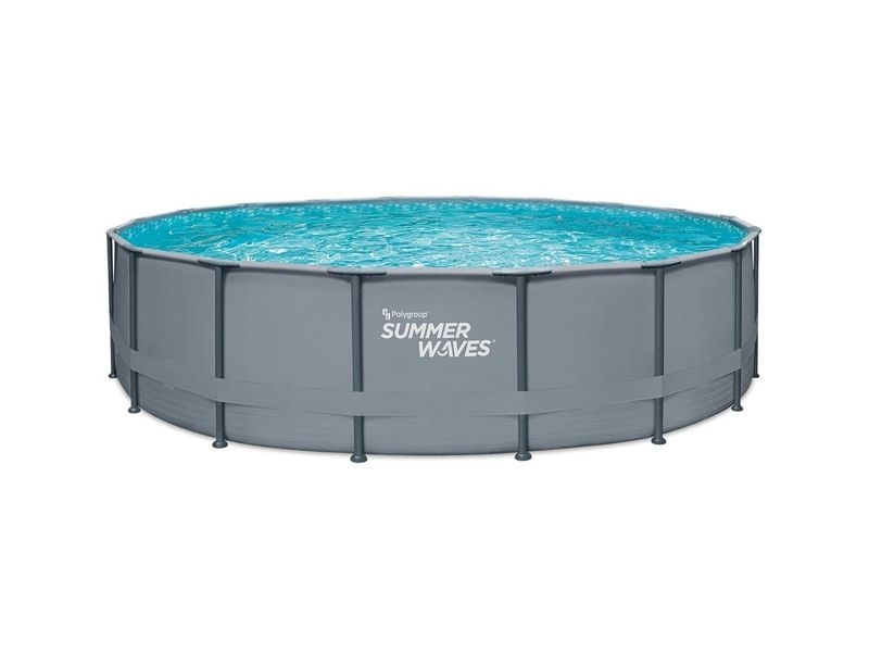 Die Rahmenkonstruktion des Pools besteht aus verzinkten Stahlrohren, die für maximale Stabilität sorgen. Die Außenwand des Pools in elegantem Grauton fügt sich harmonisch in jede Gartenlandschaft ein.