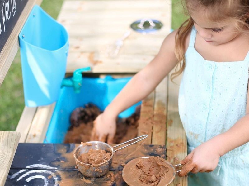 Mit der Matschküche Outdoor von TP Toys schenken Sie Ihrem Kind nicht nur ein Spielzeug, sondern ein Erlebnis, das die Fantasie beflügelt und stundenlangen Spaß garantiert!