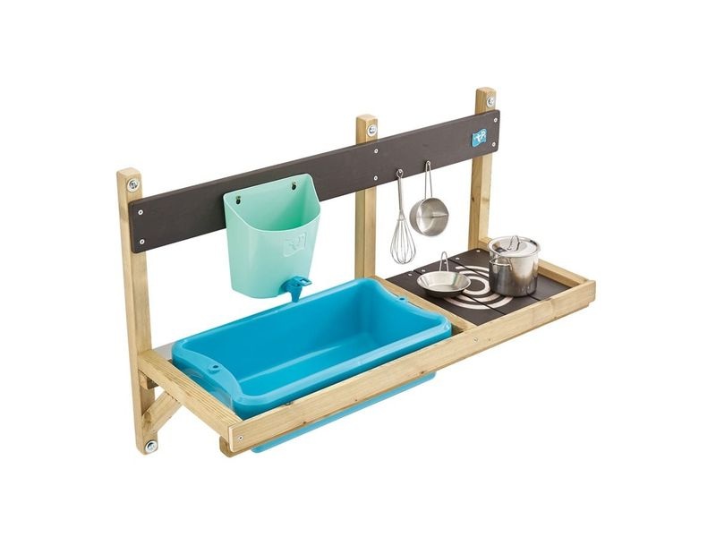 Die ausgestattete Matschküche Pug Deluxe von TP Toys bietet alles, was kleine Köche benötigen: ein abnehmbares, funktionierendes Spülbecken, einen authentischen Wasserkreislauf, eine bemalte Herdplatte und hochwertiges Geschirr aus Edelstahl. Um das Spülbecken zu füllen, öffnen Sie einfach den Stöpsel und geben die gewünschte Menge Wasser hinein. Mit der Pumpentaste wird das Wasser in den Kreislauf gebracht und fließt anschließend aus dem Wasserhahn. Perfekt für Kinder, die echte Kochabenteuer erleben möchten.