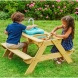 Der Marmot-Tisch ist aus FSC®-zertifiziertem Kiefernholz gefertigt, was höchste Qualität garantiert. Zwei integrierte Bänke bieten einen sicheren und stabilen Sitzplatz. Alles ist auf Kindergröße abgestimmt.