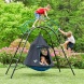 Der UFO-Spielplatz mit Schaukel von TP Toys bietet eine ideale Kombination aus Spielspaß und Entspannung. Die robuste und stabile Konstruktion besteht aus verchromtem Stahl, die Hängeschaukel aus atmungsaktivem Polyester. Ausführung in Schwarz-Blau.