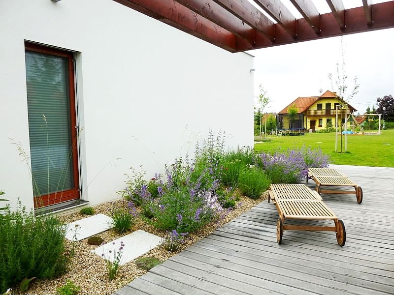 4. Vielseitige Verwendung – Vlies kann als Unterlage unter der Mulchrinde, Holzsschnitzeln oder unter einem Kiesbett verwendet werden, wo es der Bildung von Unkraut entgegenwirkt. In Kombination mit Böschungsmat­ten werden Hänge zudem vor Erosion geschützt.