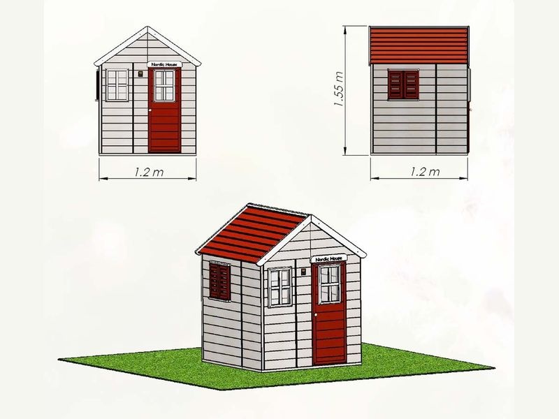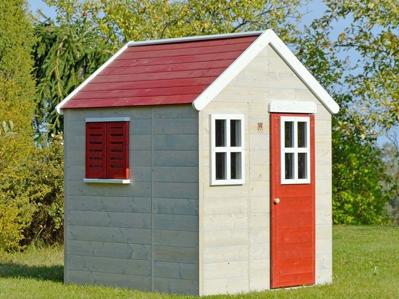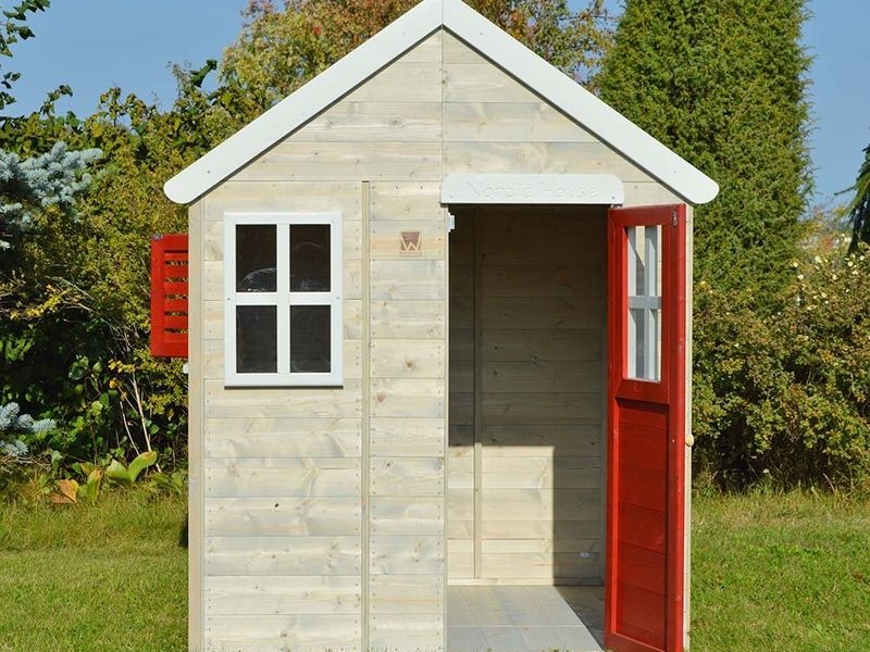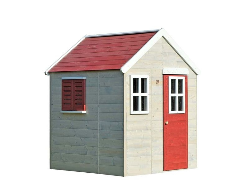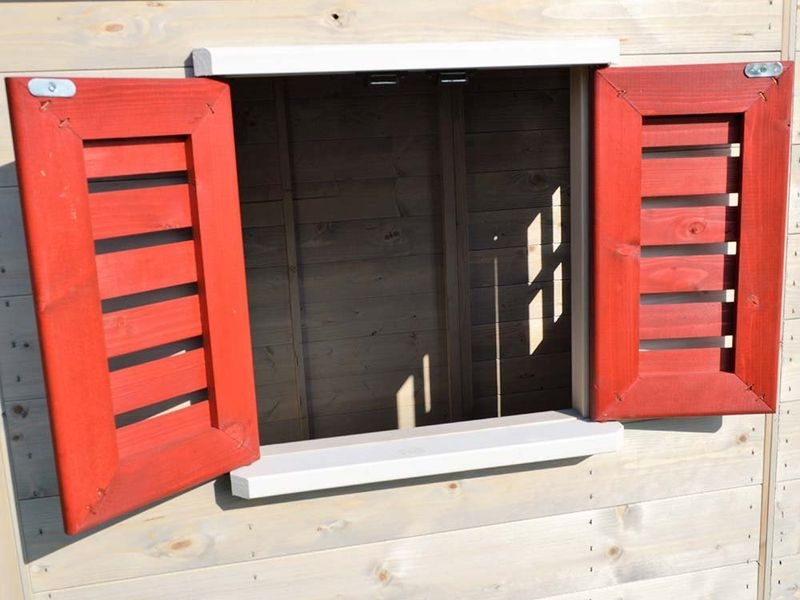 Das Kinderspielhaus überzeugt mit seinem natürlichen Look aus nordischem Kiefernholz. Ein Gitterfenster aus Plexiglas und ein weiteres Fenster mit Fensterläden verleihen dem Holz Spielhaus einen besonderen Charme, der Kinder sofort begeistert.