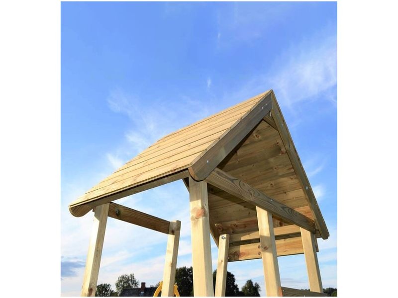 Der Spielturm ist aus langlebigem nordischem Kiefernholz gefertigt, das eine lange Lebensdauer und Sicherheit für Ihre Kinder gewährleistet. Alle verwendeten Materialien erfüllen strenge Sicherheitsstandards, bestätigt durch das Zertifikat FSC-Mix 70 % sowie EN71. Die Tragfähigkeit des Turms beträgt 100 kg.