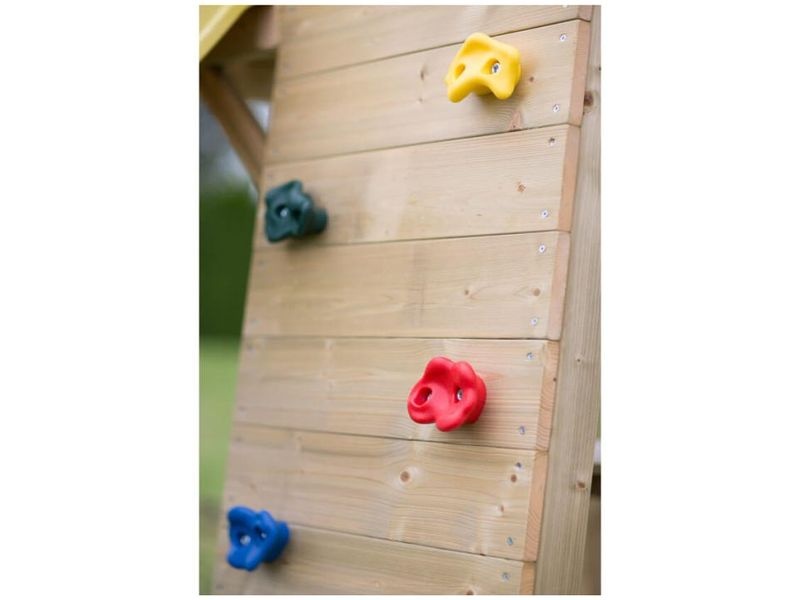 Der Spielturm mit natürlicher Optik und farbigen Elementen zieht Kinder magisch an und lädt zu ständigem Spielen ein. Er bietet nicht nur erstklassige Funktionalität, sondern auch eine ansprechende Optik, die Ihrem Außenbereich Charme verleiht und jeden Garten bereichert.