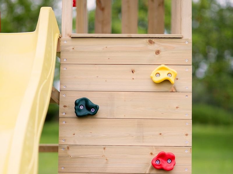 Der Spielturm mit Rutsche und Rutschbahn überzeugt durch seinen natürlichen Look und farbenfrohe Elemente, die Kinder sofort in ihren Bann ziehen und zu stundenlangem Spielen anregen. Er bietet nicht nur erstklassige Funktionalität, sondern auch eine ansprechende Optik, die Ihrem Garten Charme verleiht und ihn gleichzeitig bereichert.