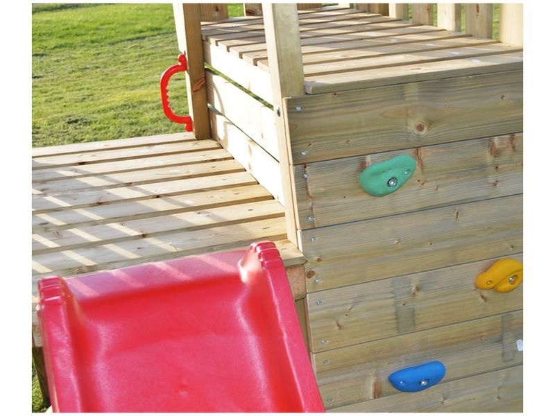 Der Spielturm mit seiner natürlichen Optik und farbigen Elementen zieht Kinder sofort in seinen Bann und lädt zu ständigem Spielen ein. Er überzeugt nicht nur durch erstklassige Funktionalität, sondern auch durch seine ansprechende Gestaltung, die Ihrem Außenbereich Charme verleiht und jeden Garten aufwertet.