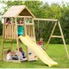 Der Spielturm ist mit einer Rutsche ausgestattet, die sowohl über eine Leiter als auch über eine Kletterwand erreichbar ist. Ihr Kind kann sich im Turm ein geheimes Versteck einrichten oder sich in verschiedene kreative Spiele vertiefen. Außerdem sorgt die Schaukel für zusätzlichen Spielspaß. Unter dem Turm befindet sich ein Sandkasten.
