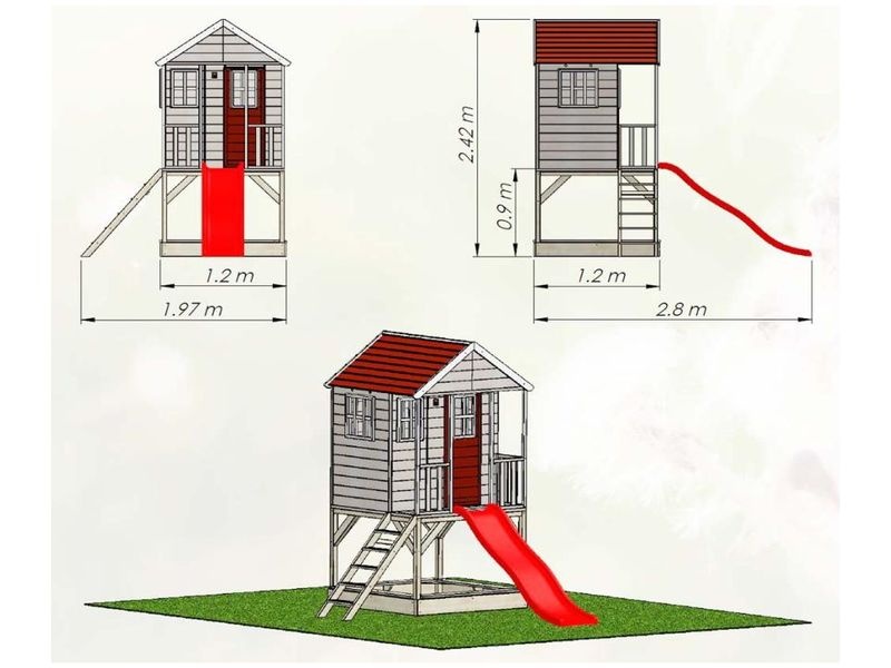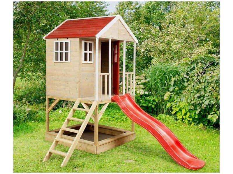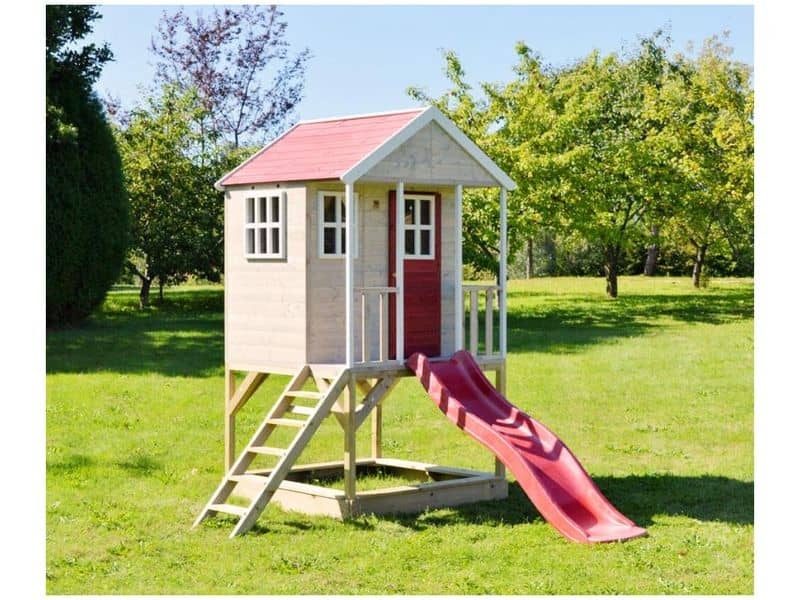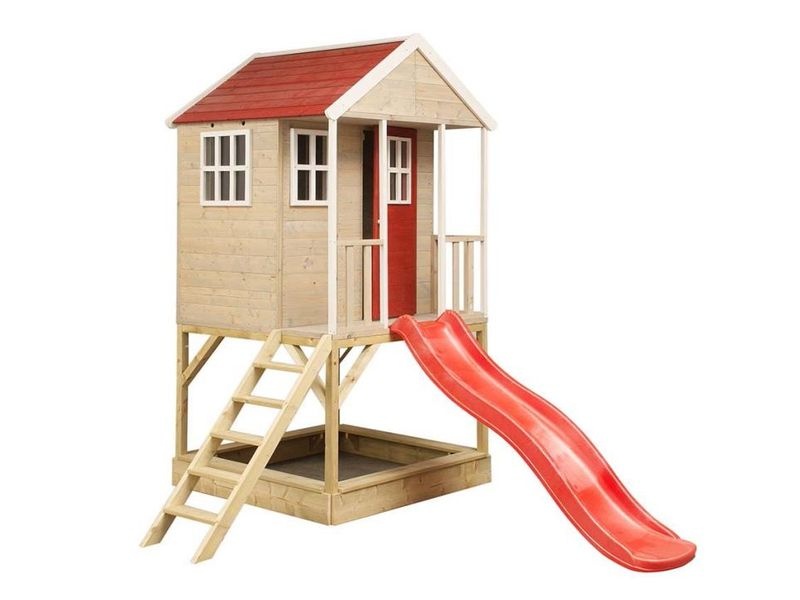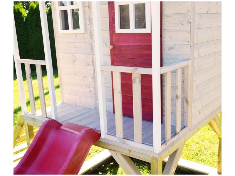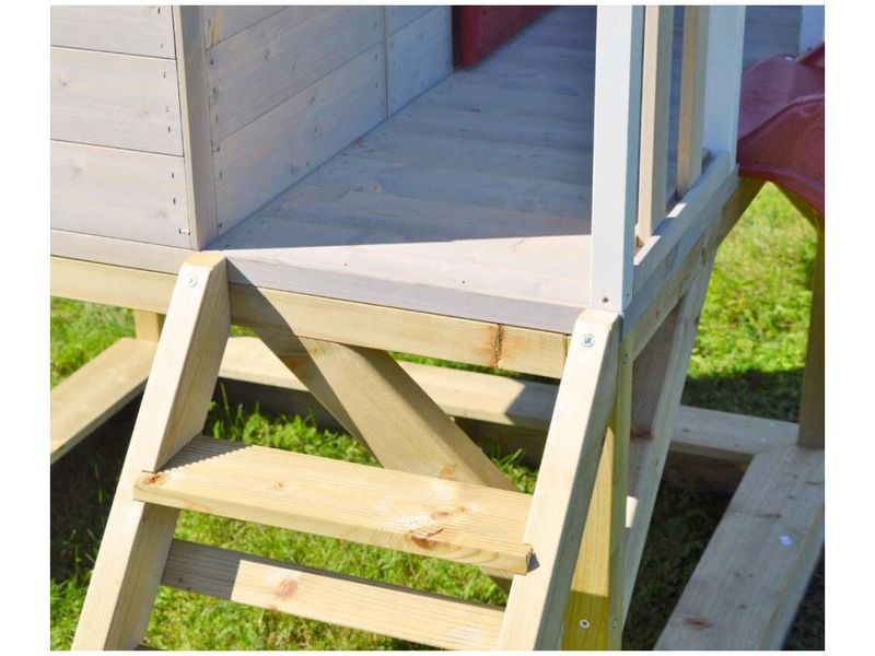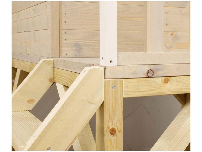 Das Spielhaus ist aus widerstandsfähigem nordischem Kiefernholz gefertigt, das eine lange Lebensdauer und Sicherheit fĂĽr Ihre Kinder gewährleistet. Alle verwendeten Materialien entsprechen strengen SicherheitsstanÂdards, bestätigt durch das FSC-Mix-70%-Zertifikat und die EN71-Norm. Die Tragfähigkeit des Hauses beträgt 50 kg.