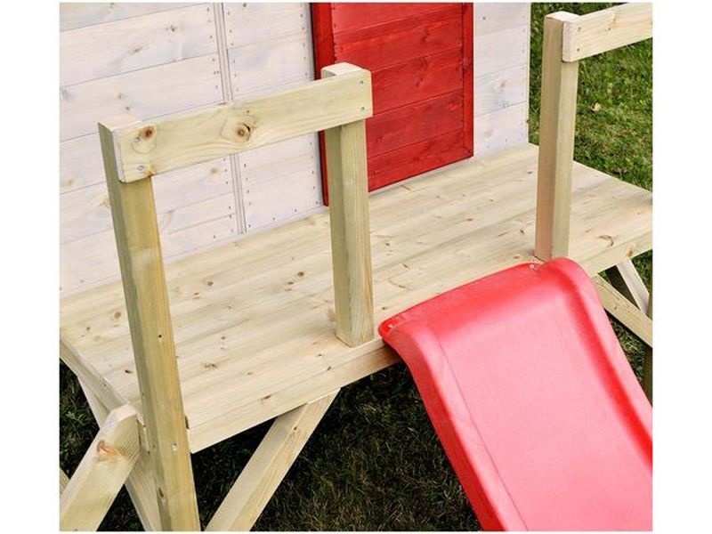 Das Haus ist mit einer Rutsche ausgestattet, die über eine Leiter erreichbar ist, sowie mit einem überdachten Sandkasten, der endlose Möglichkeiten zum Spielen und Toben bietet. Der Sandkasten ist durch das Haus darüber geschützt und kann so auch bei leichtem Regen genutzt werden. Ihr Kind kann sich im Haus ein geheimes Versteck einrichten oder sich in verschiedene kreative Spiele vertiefen.