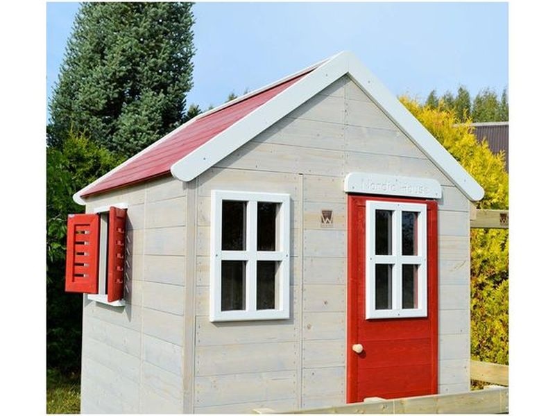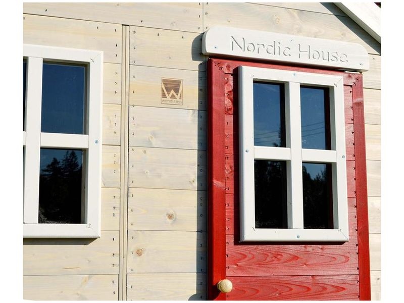 Das Spielhaus ist aus widerstandsfähigem nordischem Kiefernholz gefertigt, das eine lange Lebensdauer und Sicherheit fĂĽr Ihre Kinder gewährleistet. Alle verwendeten Materialien erfĂĽllen strenge SicherheitsstanÂdards, bestätigt durch das FSC-Mix-70%-Zertifikat und die EN71-Norm. Die Tragfähigkeit des Hauses beträgt 50 kg.