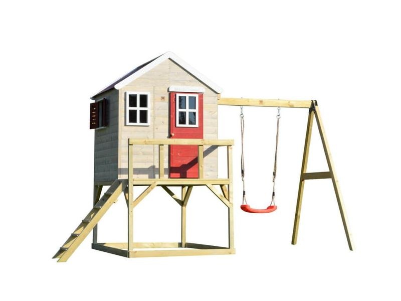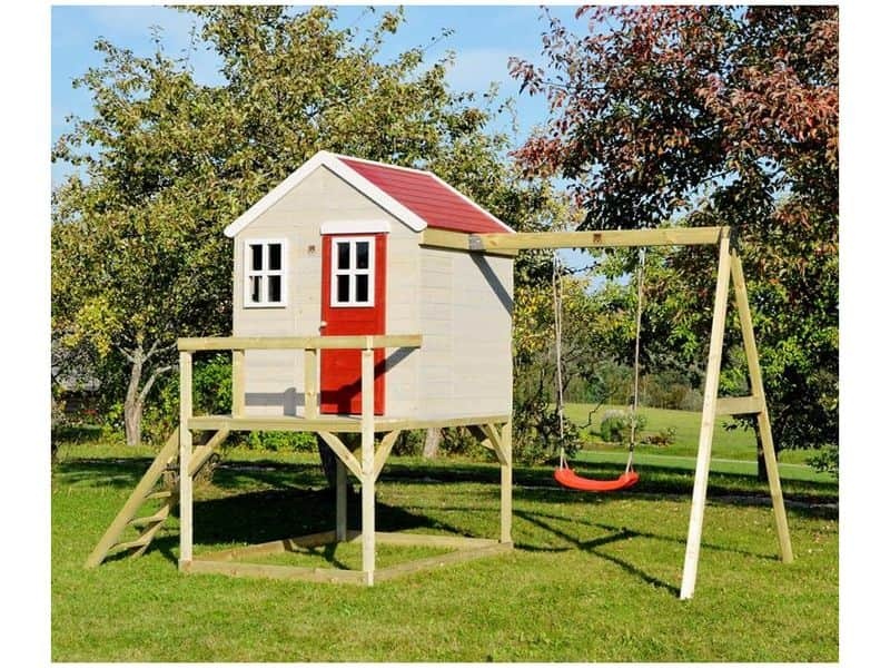 Das Stelzen-Spielhaus mit den Maßen 192×350×242 cm ist eine praktische und unterhaltsame Ergänzung für Ihren Garten. Zum Haus gehören eine Schaukel und ein Sandkasten, die Kindern vielfältige Spielmöglichkeiten bieten. Es ist ein idealer Ort für Abenteuer und fantasievolles Spielen, der Ihre Kinder begeistert und lange beschäftigt.