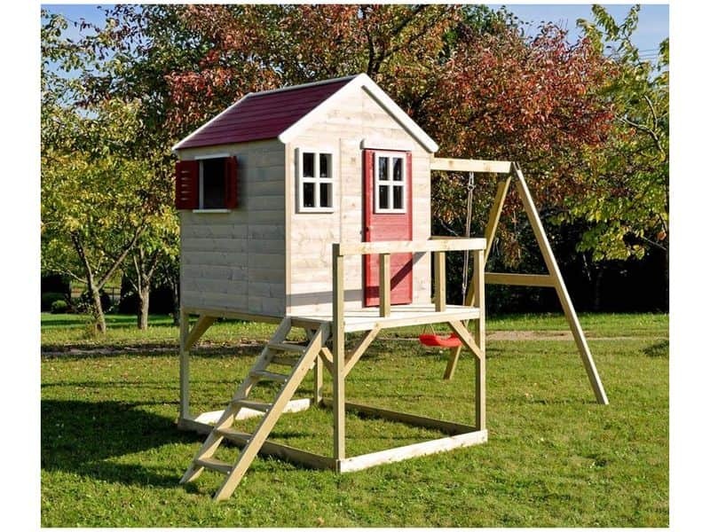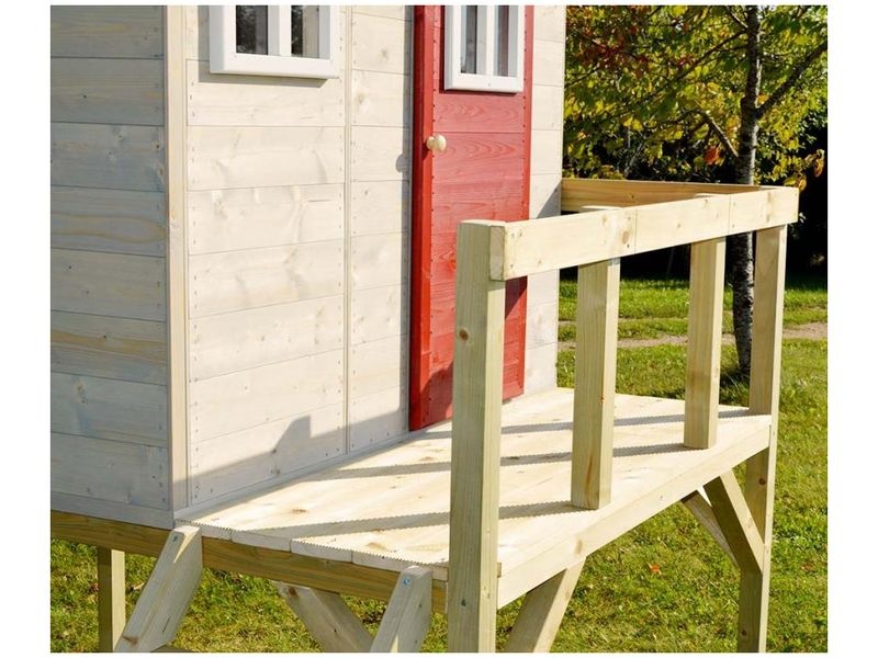 Das Stelzenhaus besticht durch seine natĂĽrliche Optik, die sowohl Kinder als auch Erwachsene anspricht. Mit zwei kleinen Plexiglasfenstern und einer Veranda mit roter EingangstĂĽr ist dieses Haus nicht nur funktional, sondern auch ein echter Blickfang.