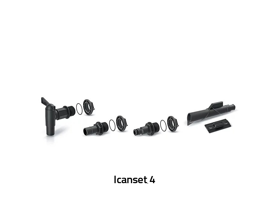 Prosperplast bietet folgende Sets mit Zubehör für Regentonnen der Serie Waterform