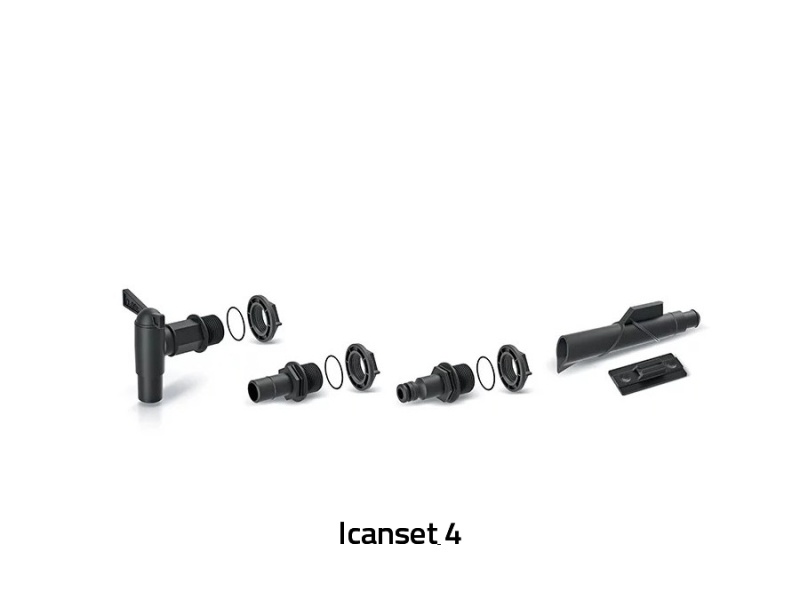 Das Set ist zum Entleeren von Regentonnen bestimmt. Im Lieferumfang sind 5 Teile enthalten: Wasserhahn, Anschluss, Schnellkupplung, Endstück, Endstückhalter. Das Endstück ist mit Regentonnen der Serie Smooth kompatibel. Der Wasserhahn ist mit einer Dichtung und einer Mutter ausgestattet, die für seine Kompatibilität mit allen Regenwassertonnen von Prosperplast (Serie Waterform) sorgen.